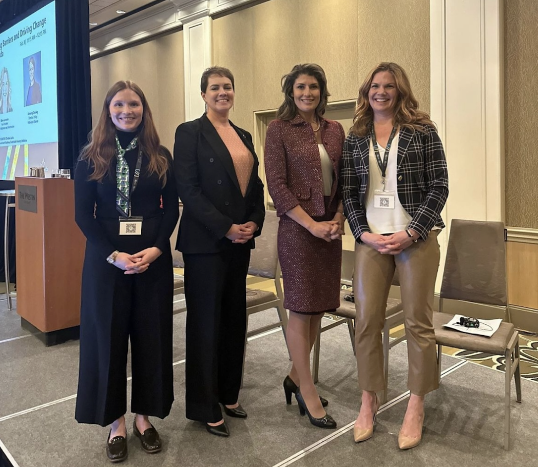The panellists (from left to right in the image) were Christine Leduc from the Sustainable Forestry Initiative, Amberely Dooley from Pathways Alliance, Nuvyn Peters from Peter & Associates, and Blaire Lancaster from Tidewater.